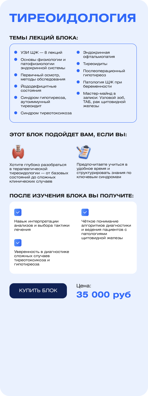 - Хотите глубоко разобраться в терапевтической тиреоидологии — от базовых состояний до сложных клинических случаев