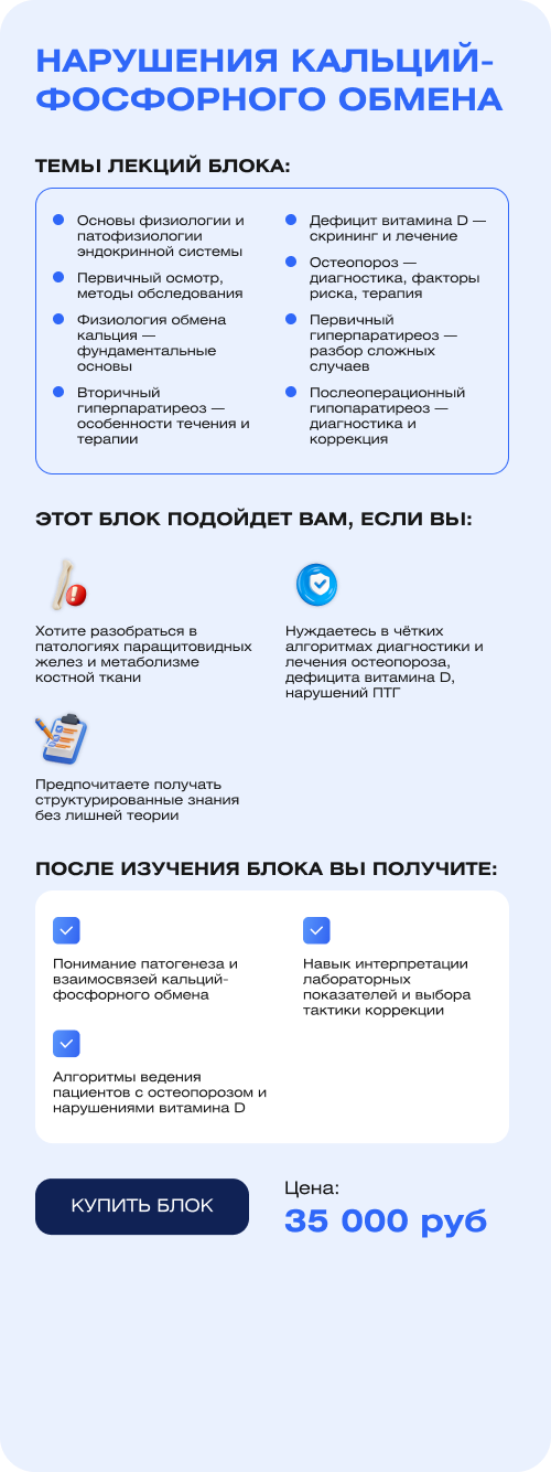 - Понимание патогенеза и взаимосвязей кальций-фосфорного обмена