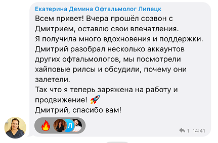 - Мышление «я — врач с блогом»: появляется удовольствие от процесса, даже от «нелюбимых» рилс.